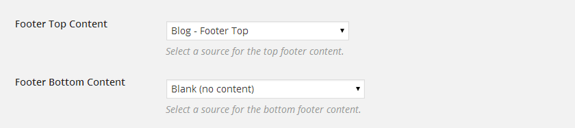 Add widgets to footers by selecting a sidebar as the source. Any sidebar can be added to your footer. New custom sidebars can be created from the theme’s custom sidebar tool.